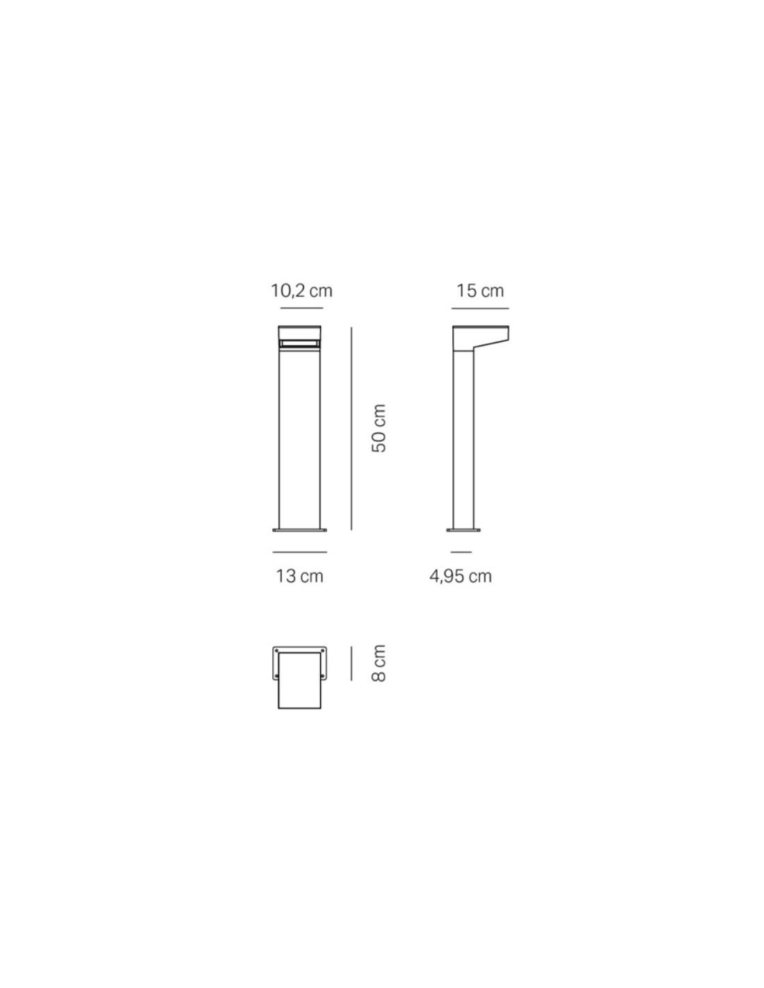 Il paletto Forward con luce asimmetrica è progettato per l’illuminazione di giardini, percorsi e aree pedonali all’aperto.